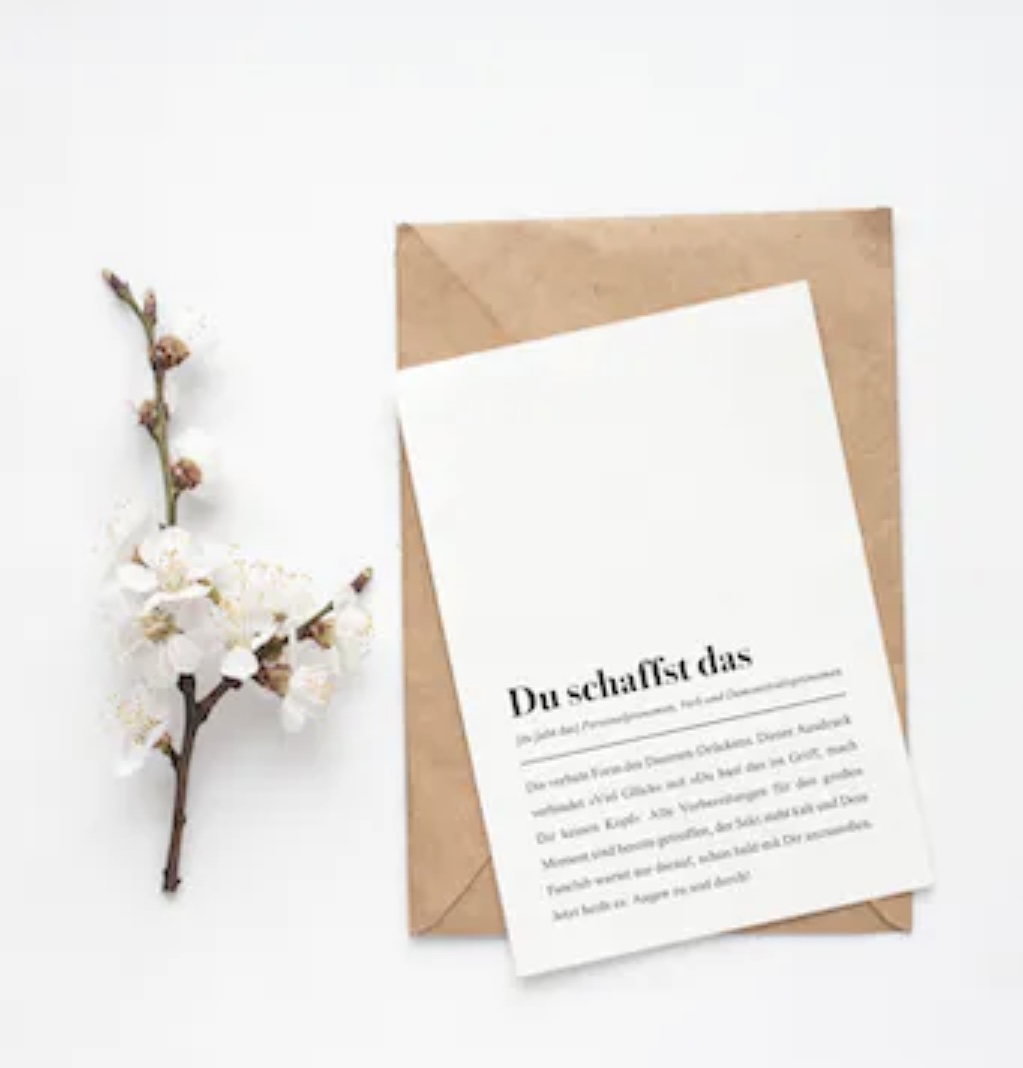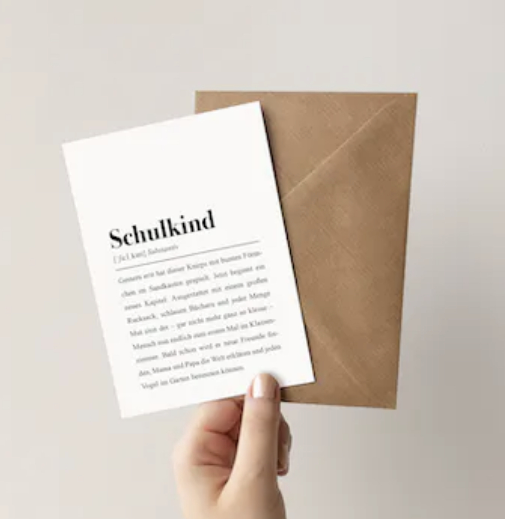 Die Definitions-Texte sind einzigartig und von uns mit ganz viel Herz und Witz verfasst. Die Karte ist vorne mit der Definition bedruckt, innen ist sie weiß und beschreibbar. Auf der Rückseite befindet sich ein kleines Logo unserer Manufaktur. Die Karte ist klimaneutral auf extra dickem 400g/qm Papier gedruckt. Sie fühlt sich stabil und wertig in der Hand an.
