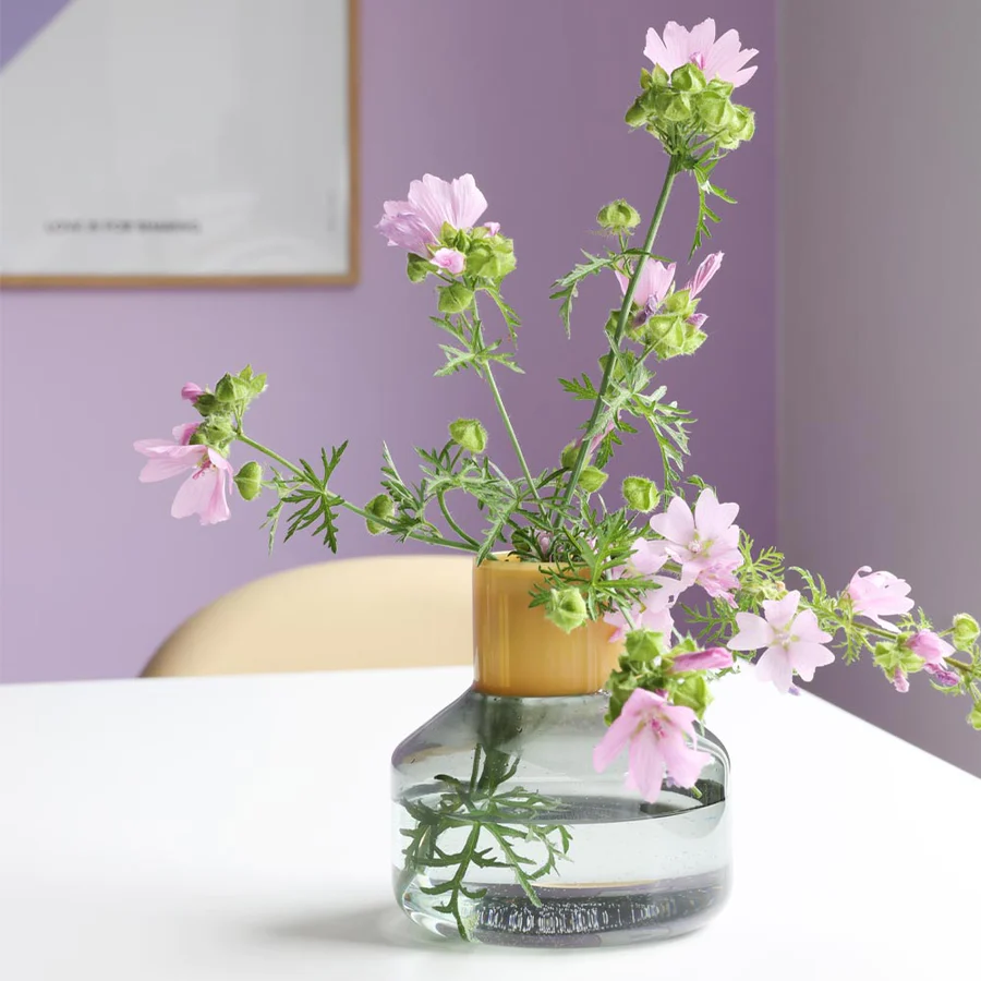 design letters – Glasvase „Generous“, mittel, milky/yellow – smoke