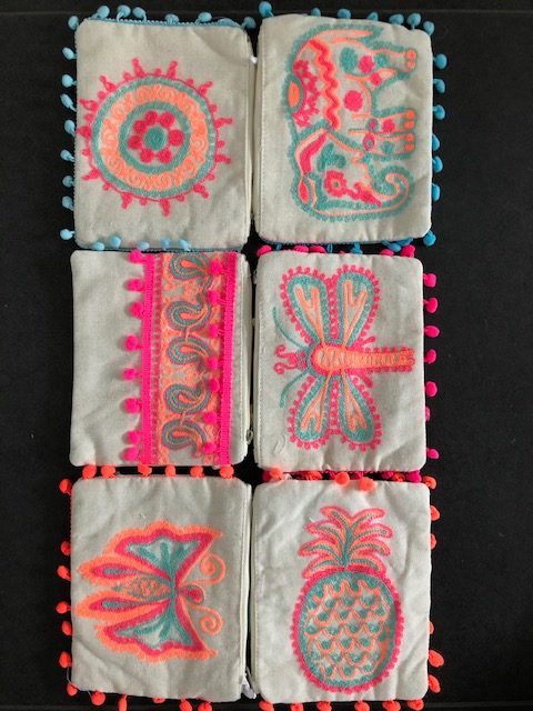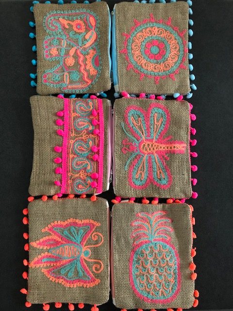 | Jute-Täschchen "Pom-Poms" | Sonne beige, Elefant beige, Paisley beige, Schmetterling beige, Libelle beige, Ananans beige, Sonne natur, Elefant natur, Paisley natur, Schmetterling natur, Libelle natur, Ananans natur |