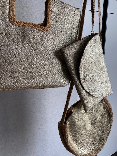 3 verschiedene Formen: Clutch (34×21 cm), Shopper rechteckig (33×46 cm), Umhängetasche rund (30 cm)