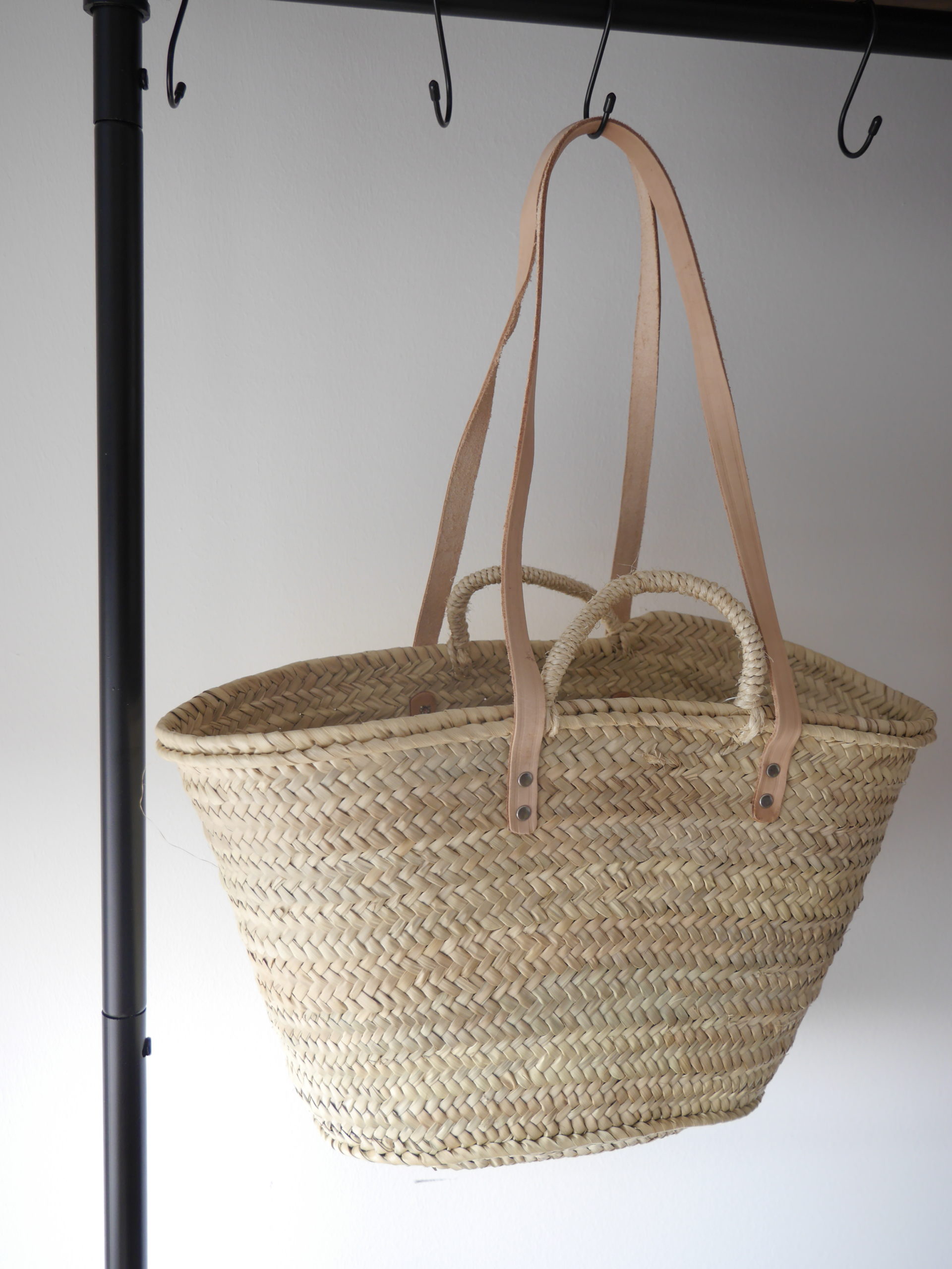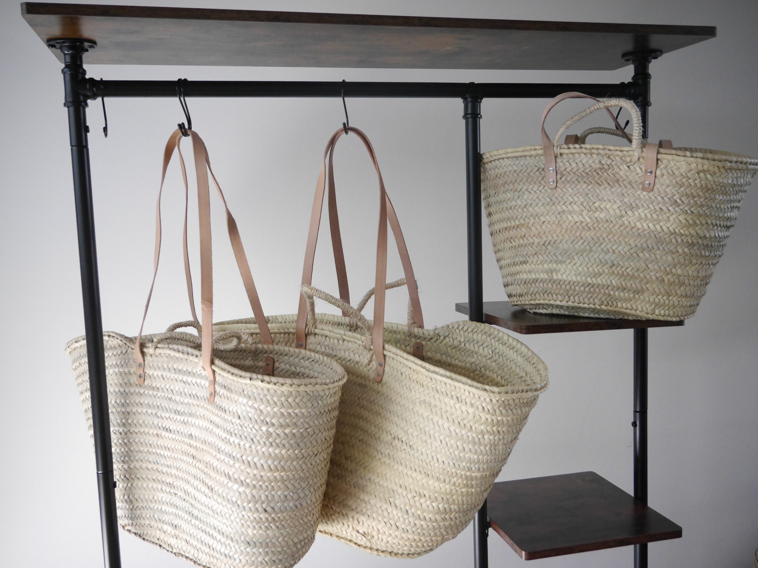 Korb aus Palmenblättern mit kurzen und langen Henkeln in verschiedenen Größen