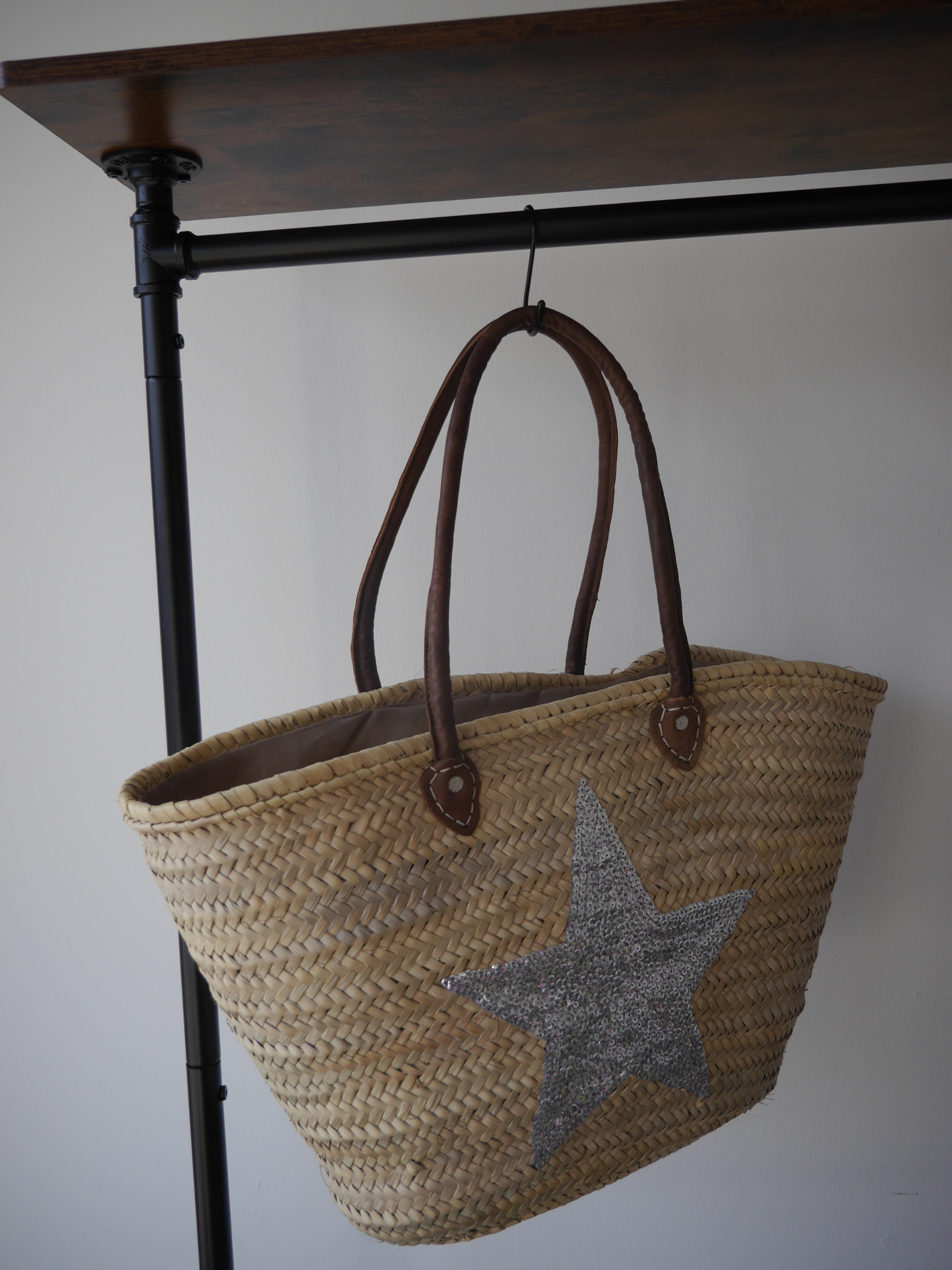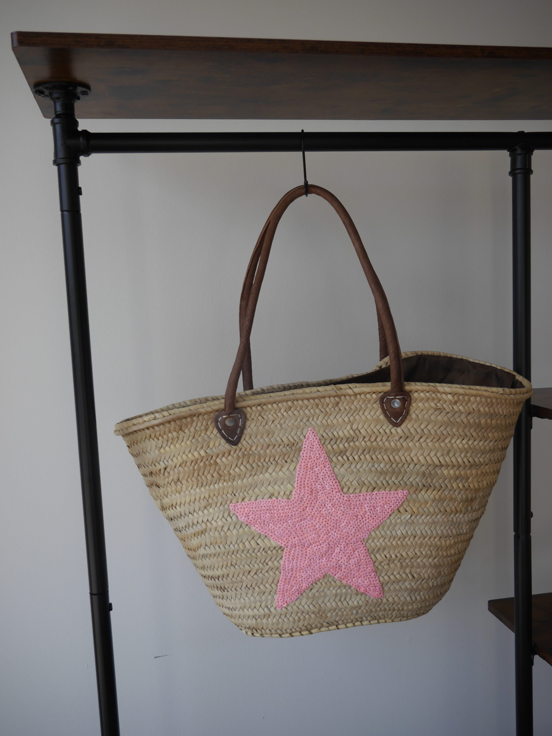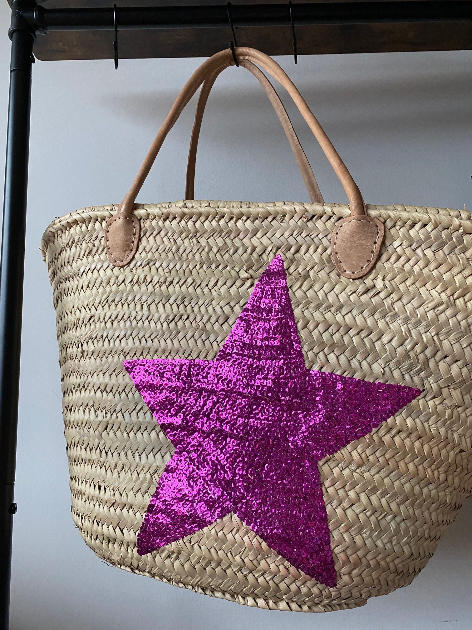 Korb aus Palmenblättern mit Pailletten-Herz/Stern, verschiedene Farben