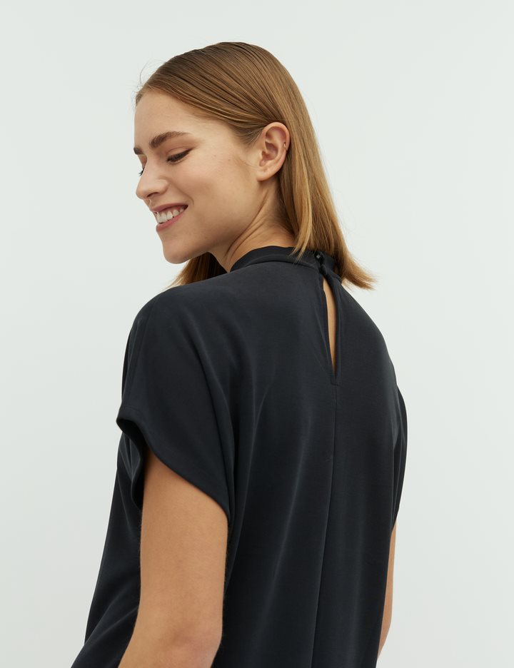 Linea hat kurze Ärmel und einen kurzen Rollkragen, was dem Kleid einen lässigen Look verleiht.