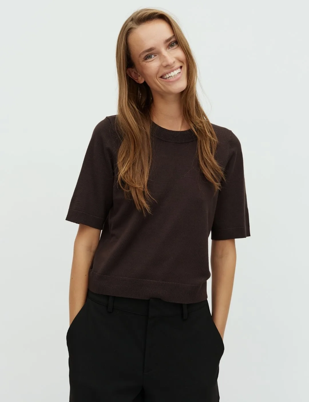 mbym – Kurzarmpullover Carla, dunkelbraun