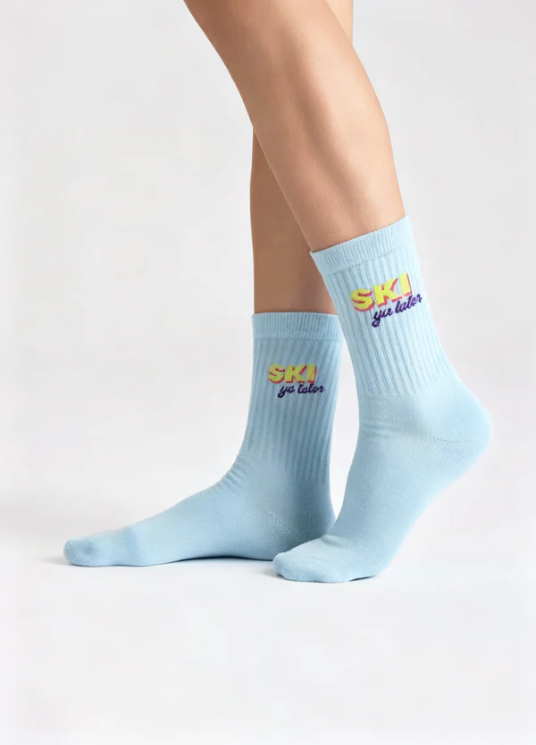 Entdecke unsere Après Ski Club Socken im 3er Set – mit den Retro-Designs POW POW, SKI ya later und Alpine. Gefertigt aus hochwertiger Bio-Baumwolle (Made in Portugal) überzeugen die Socken durch angenehmen Tragekomfort, langlebige Qualität und bringen das Gefühl von frischer Bergluft, knirschendem Schnee und warmem Kaminfeuer direkt an deine Füße.