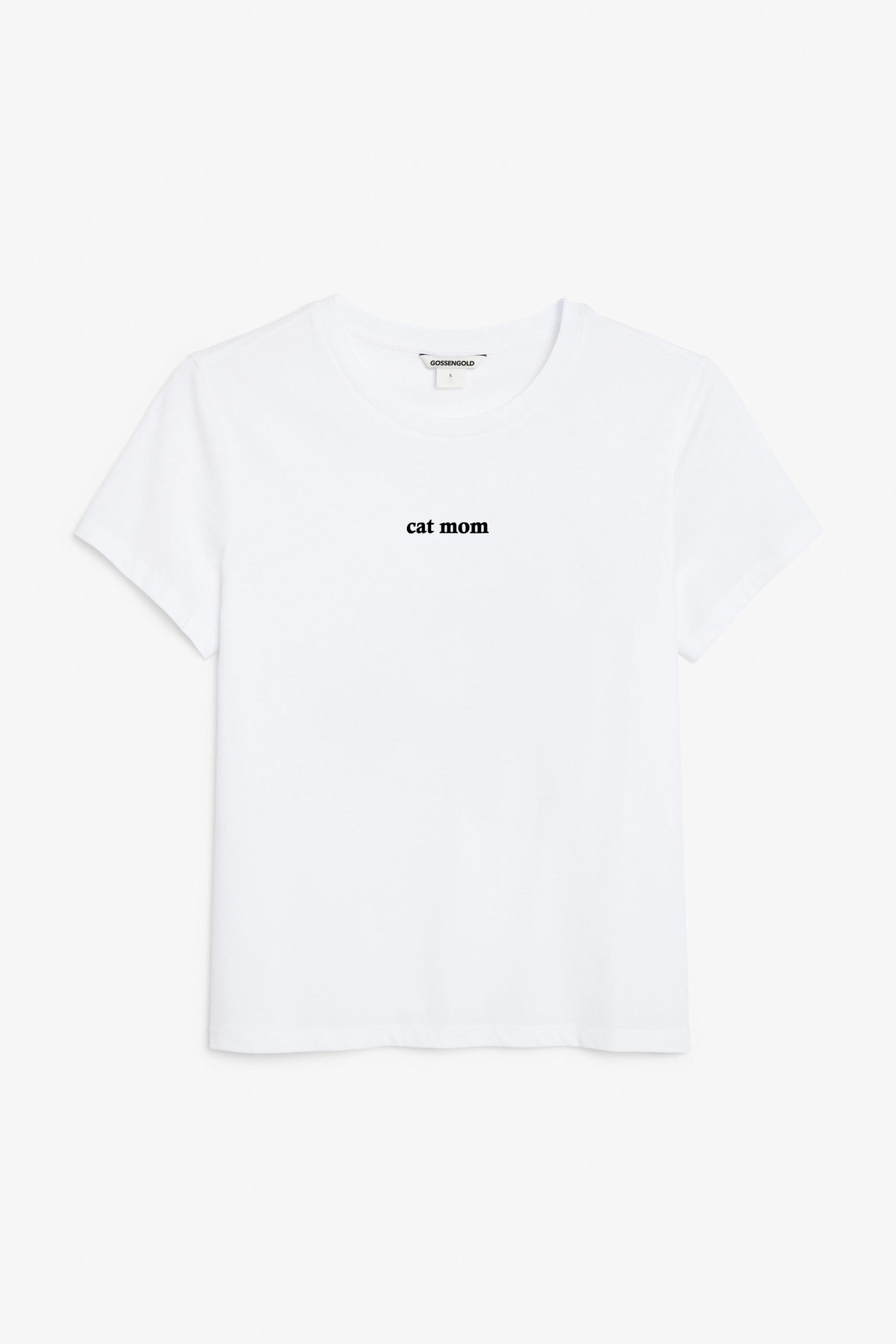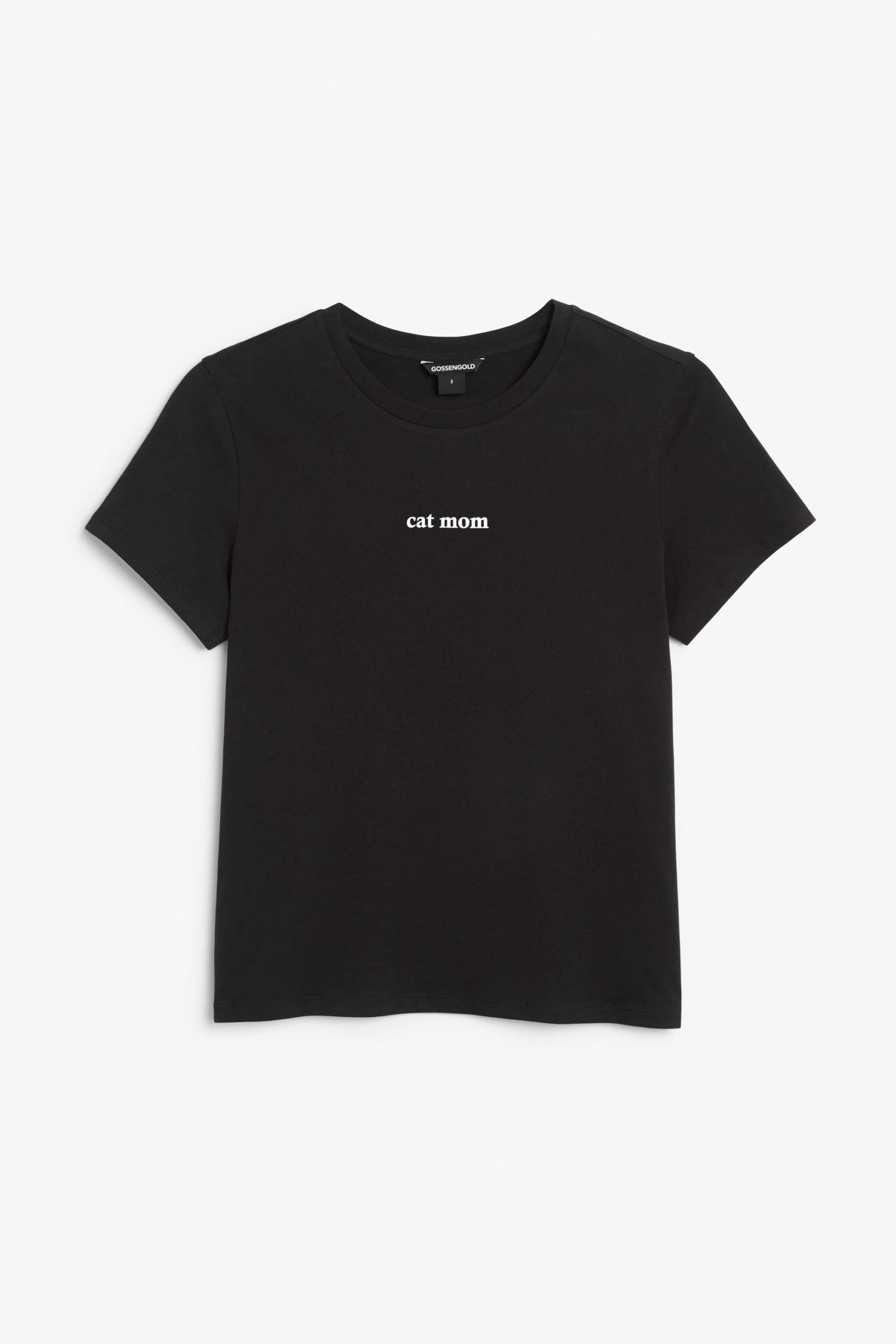 T-Shirt „cat mom“, schwarz + weiß, Gr. XS-XL