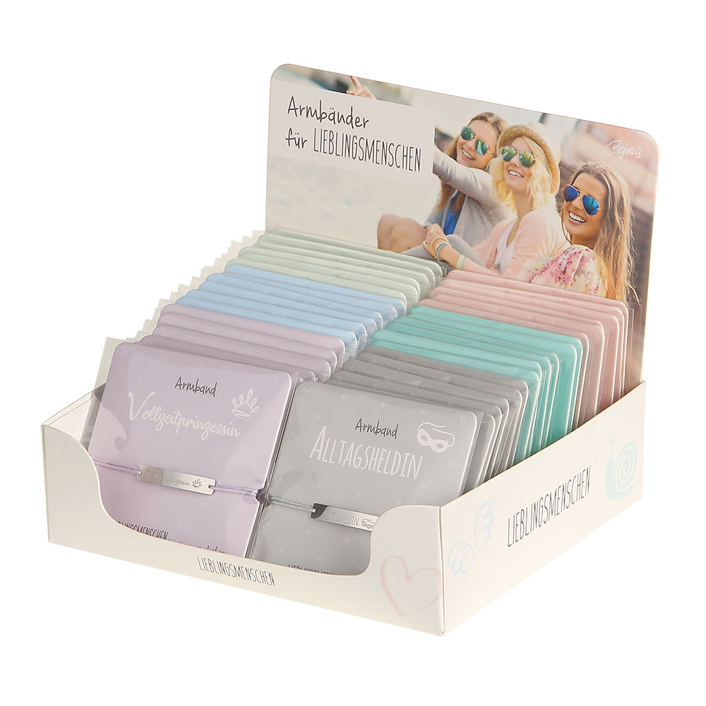 Armbänder aus der Kollektion Lieblingsmenschen, bestehend aus kleinen Geschenken, von Kugelschreibern über Papeterieartikel bis hin zu Schlüsselanhängern