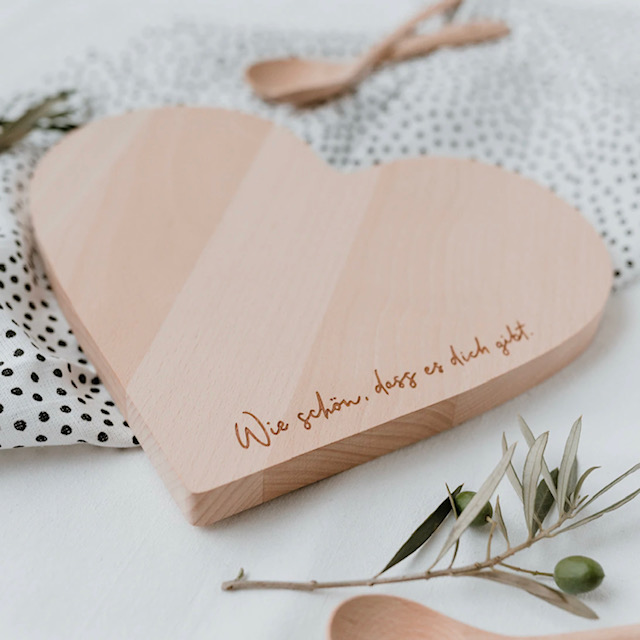 – Frühstücksbrettchen in Herzform aus Buchen-Leimholz gefertigt