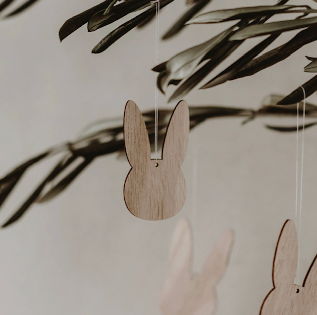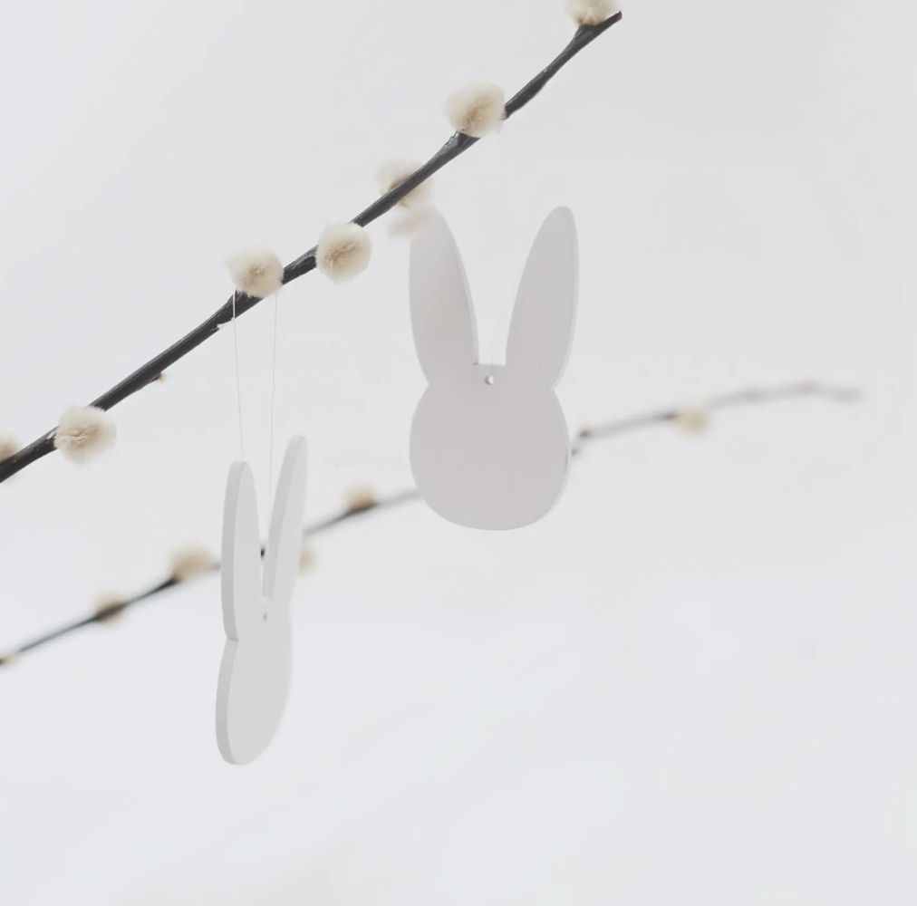 Eulenschnitt „Holzanhänger Hase“, natur + weiß
