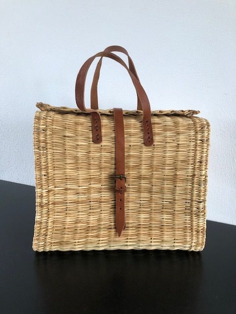 Korbtasche „Schoolbag“ mit kurzen Henkeln und Lederriemen