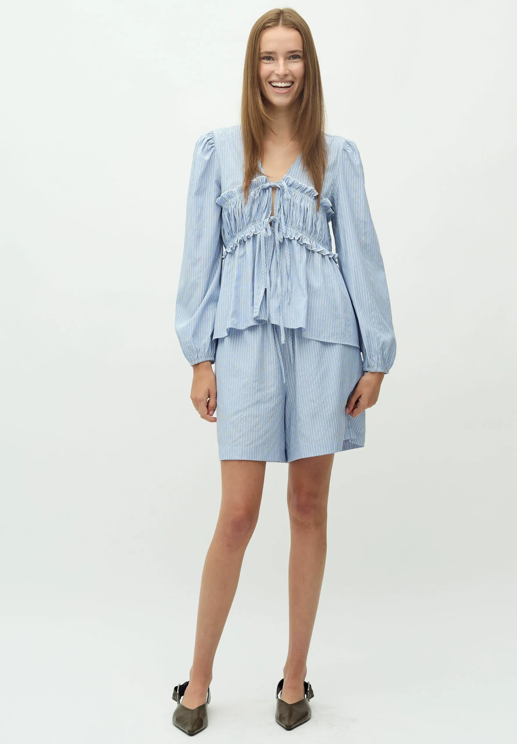 Schreibe die erste Rezension für „mbym – Bluse Zinnia, blue zinnia stripe““