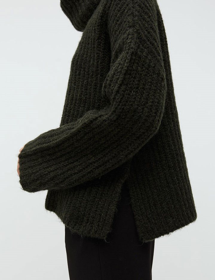 Grobstrick mit Stehkragen.