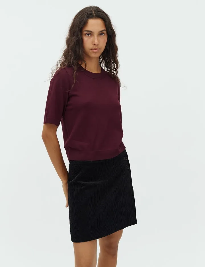mbym – Kurzarmpullover Carla, bordeaux, Gr. XS