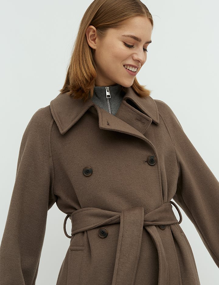 Wollmischung-Mantel mit abnehmbaren Gürtel in Midi-Länge.