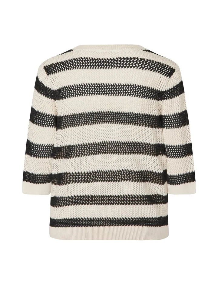Loch-Strick-Pullover mit kurzen Ärmeln und Rundhals.