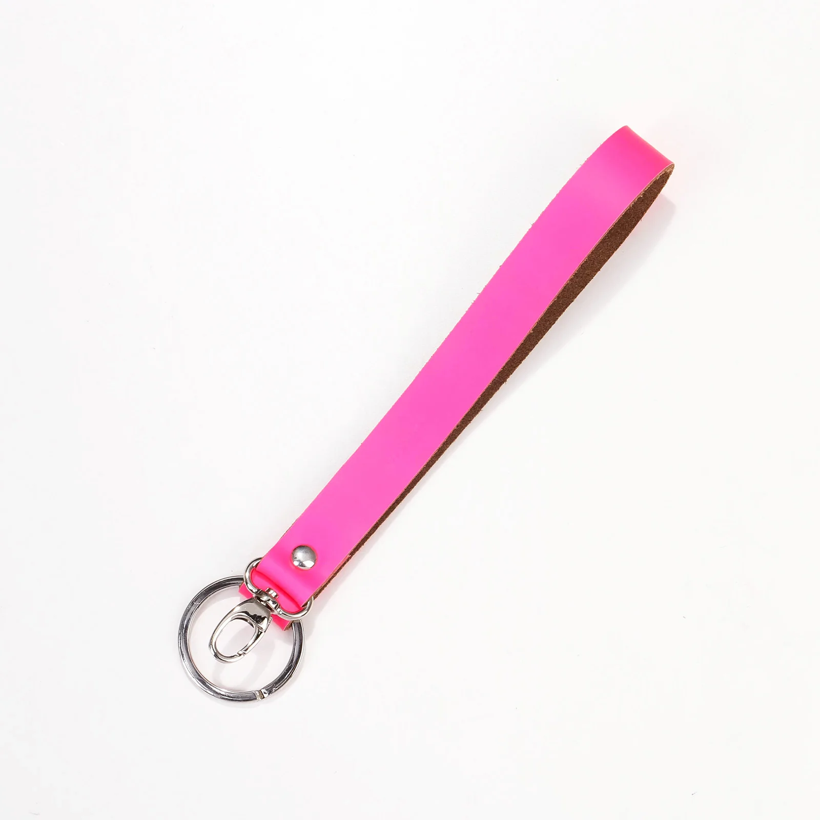 Ein Schlüsselband aus Rindleder mit Karabiner und Schlüsselring.