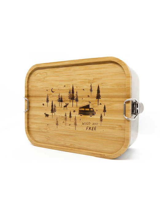 Der Hingucker für alle Camping- und Wanderabenteuer! Mit praktischem Holz-Deckel, der direkt als Schneidebrett verwendet werden kann.