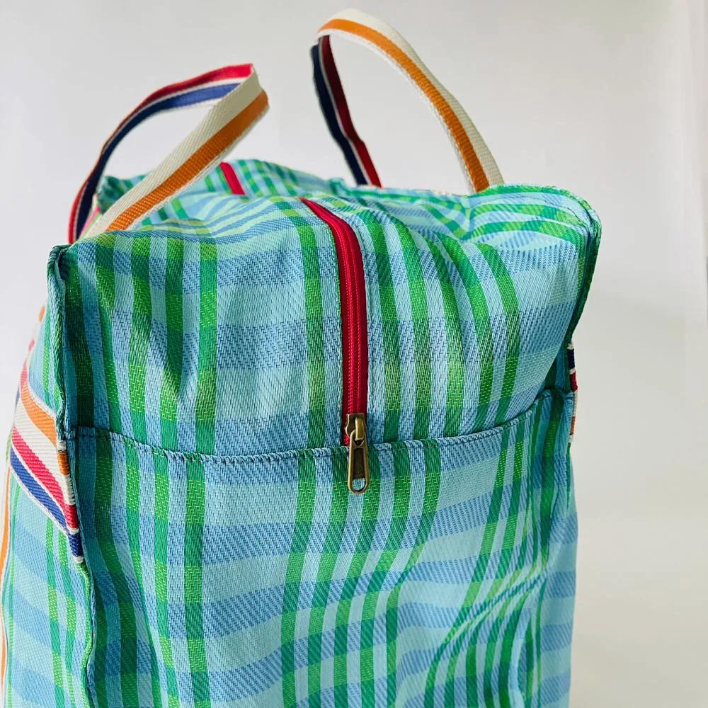 Das recycled Plastikmaterial kann naß werden und trocknet schnell wieder, und na klar, du kannst das Material auch ganz easy abwaschen, falls mal was ausläuft oder sie einfach beim Gebrauch mal schmutzig wird.. die Farbigkeit bleibt lang erhalten- ein tolle Farbkombi aus Pink, Grün & Blau mit der wunderschönen Stickerei