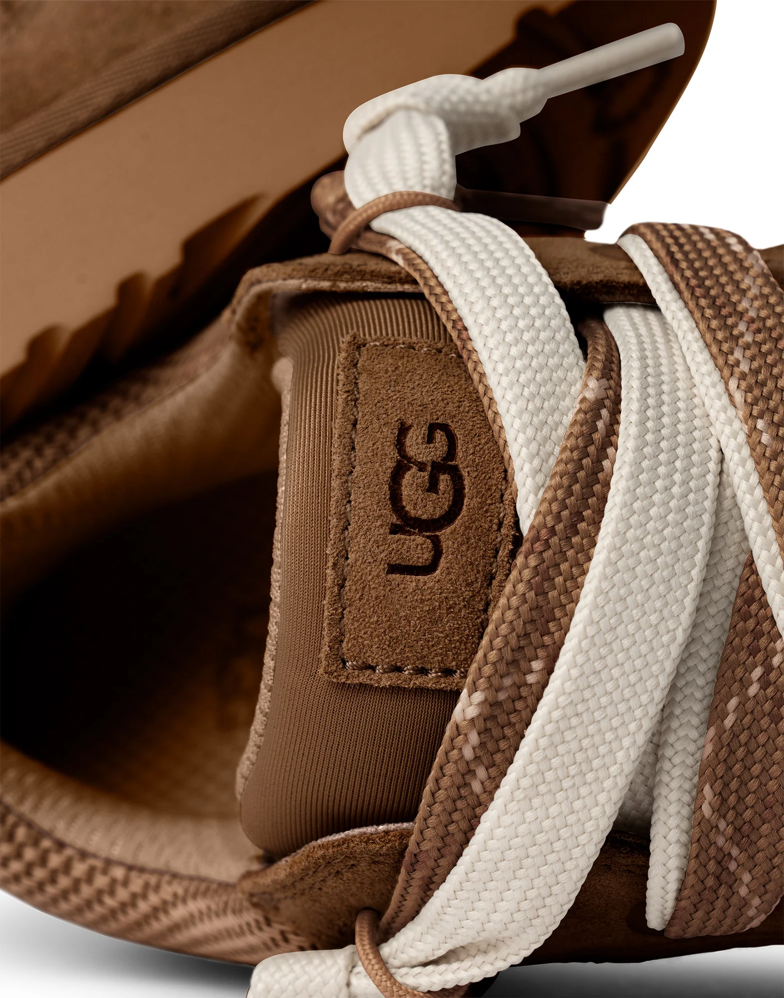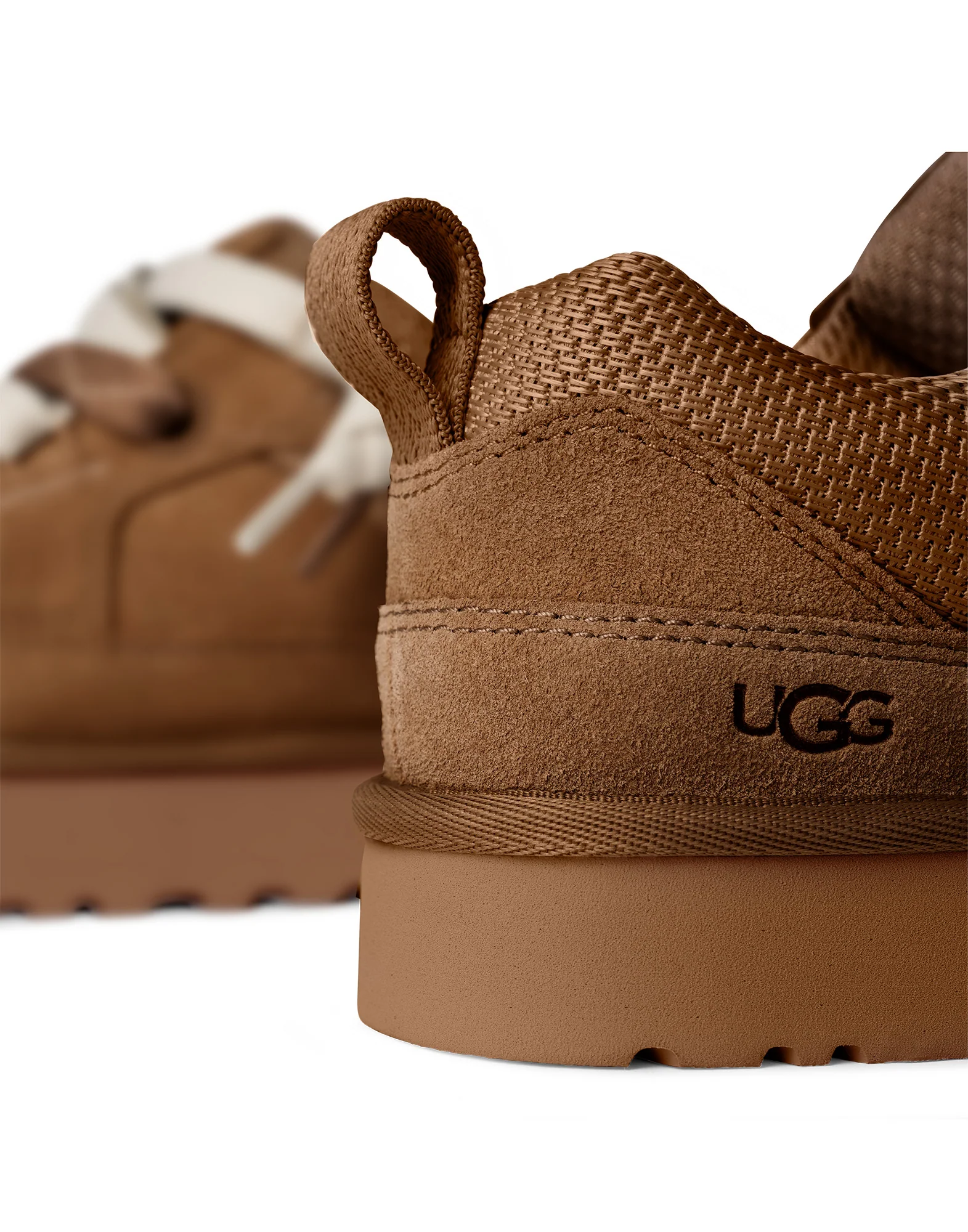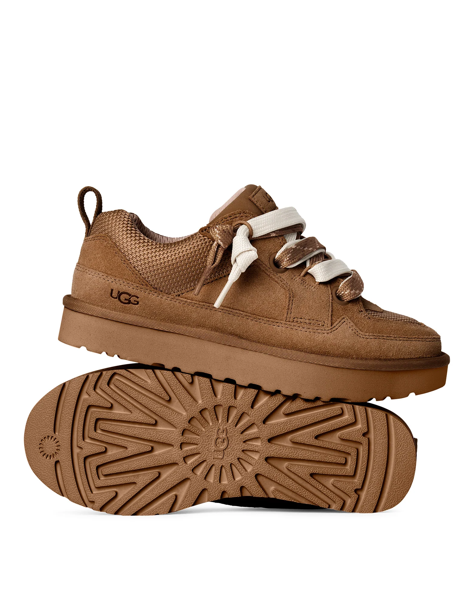 Lo Lowmel Sneaker von Ugg ist aus wasserabweisendem Strick und Wildleder in Brauntönen gefertigt, mit breiten Stoff-Schnürsenkeln, einem Futter aus recyceltem Polyester und einer herausnehmbaren, mit dem Markennamen versehenen Innensohle. UGG-Logo an der Seite, beige EVA-Gummisohle. Absatzhöhe: 3,5 cm.
